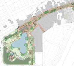 Umgestaltung der Fußgängerzone und des Parks in der Gemeindemitte