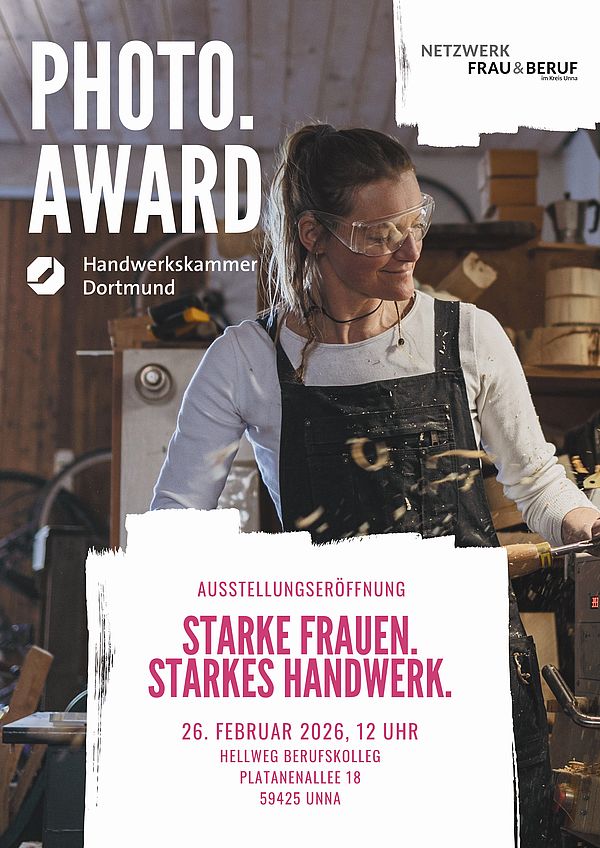 Die Handwerkskammer Dortmund (HWK) stellt dem Netzwerk Frau & Beruf im Kreis Unna die Ausstellung im Rahmen ihrer Kampagne „Starke Frauen. Starkes Handwerk.“ zur Verfügung. Ziel dieser Ausstellung ist es, engagierte Frauen im Handwerk sichtbar zu machen und neue Perspektiven auf handwerkliche Berufe zu eröffnen.