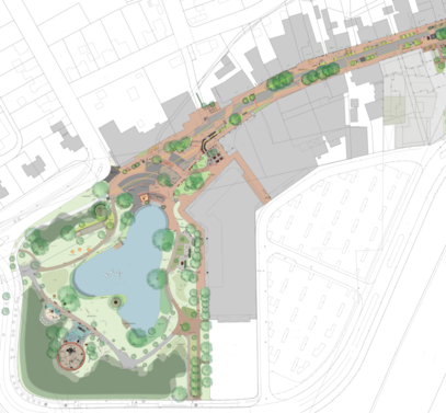 Die Entwürfe zur Neugestaltung der Fußgängerzone und des Parks in der Gemeindemitte können Sie hier einsehen.